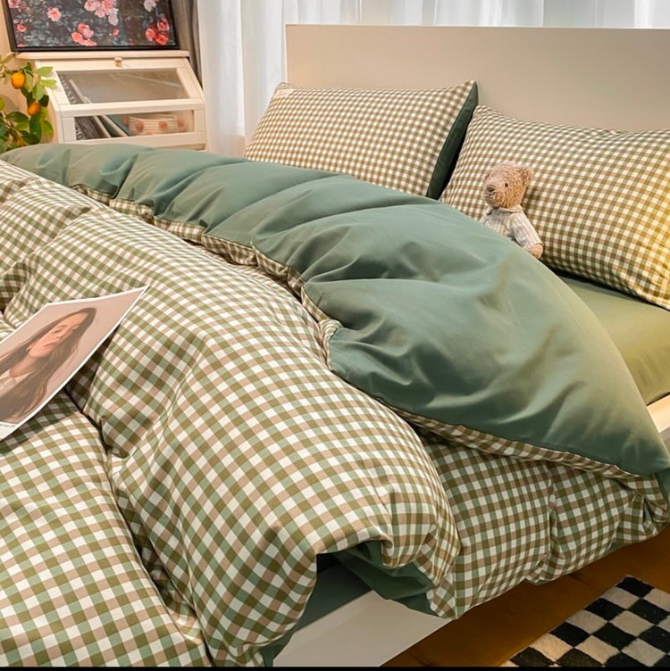ست لحاف و روتختی چهارخونه سبز پینترستی