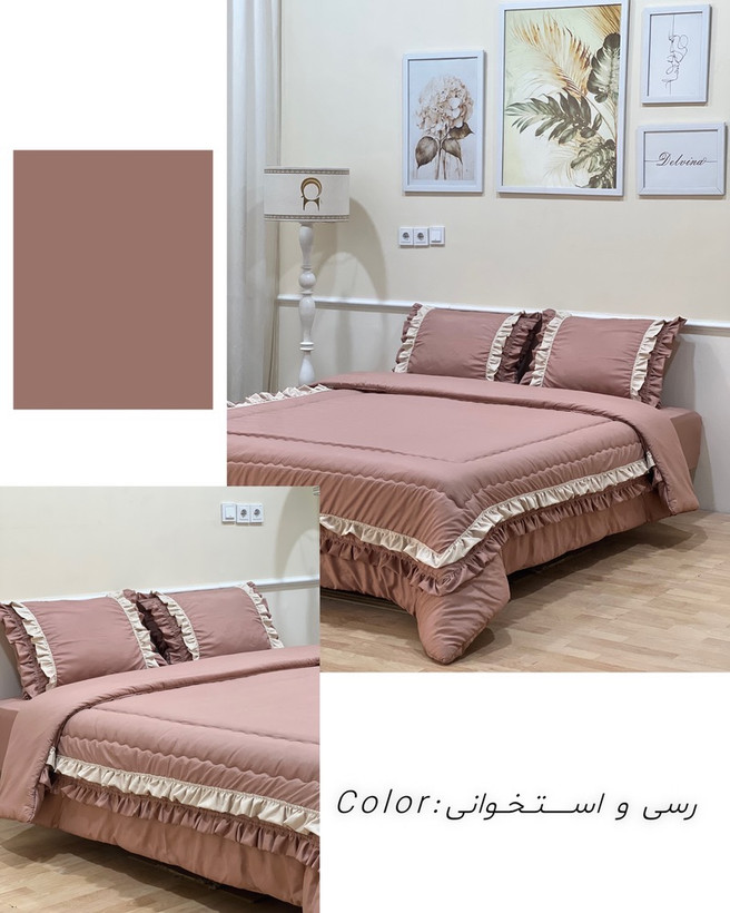 ست لحاف و روتختی رسی و استخوانی چیندار کلاسیک نخ و پنبه میکرو تنسل