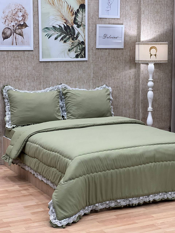 لحاف و روتختی چیندار گیپور سبز سیج