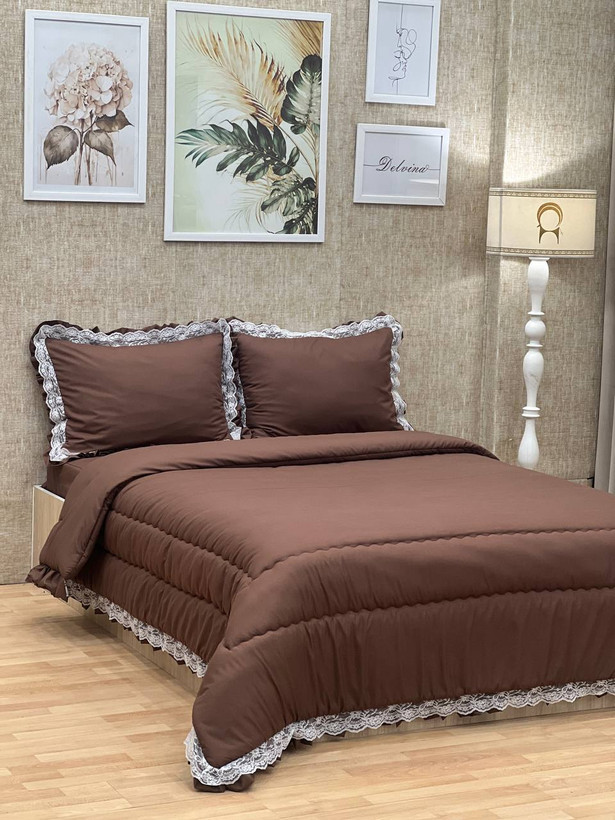 ست لحاف و روتختی قهوه ای چیندار گیپور