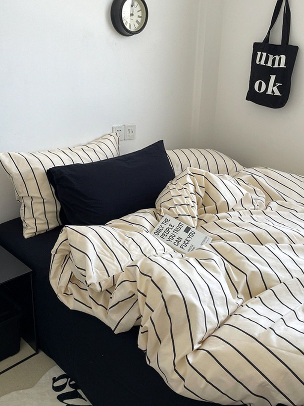 لحاف و روتختی راه راه سفید‌مشکی پینترستی