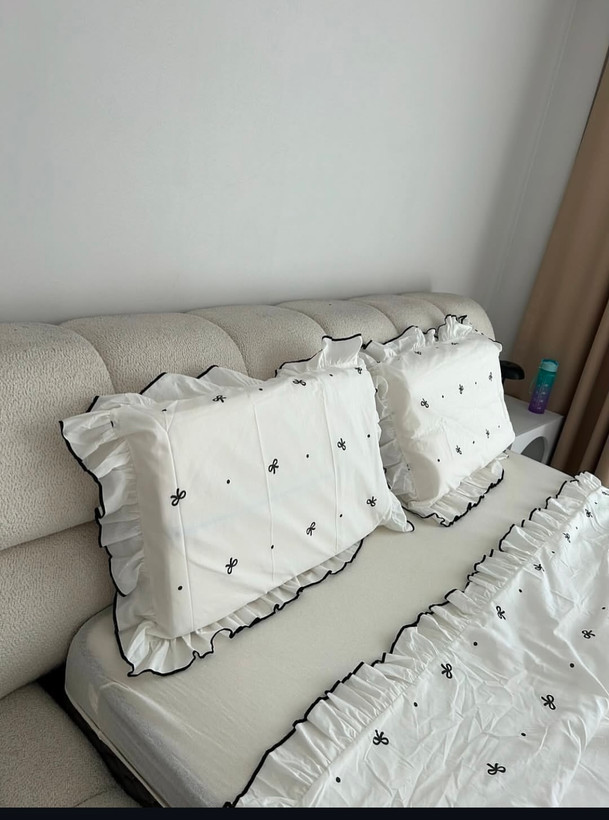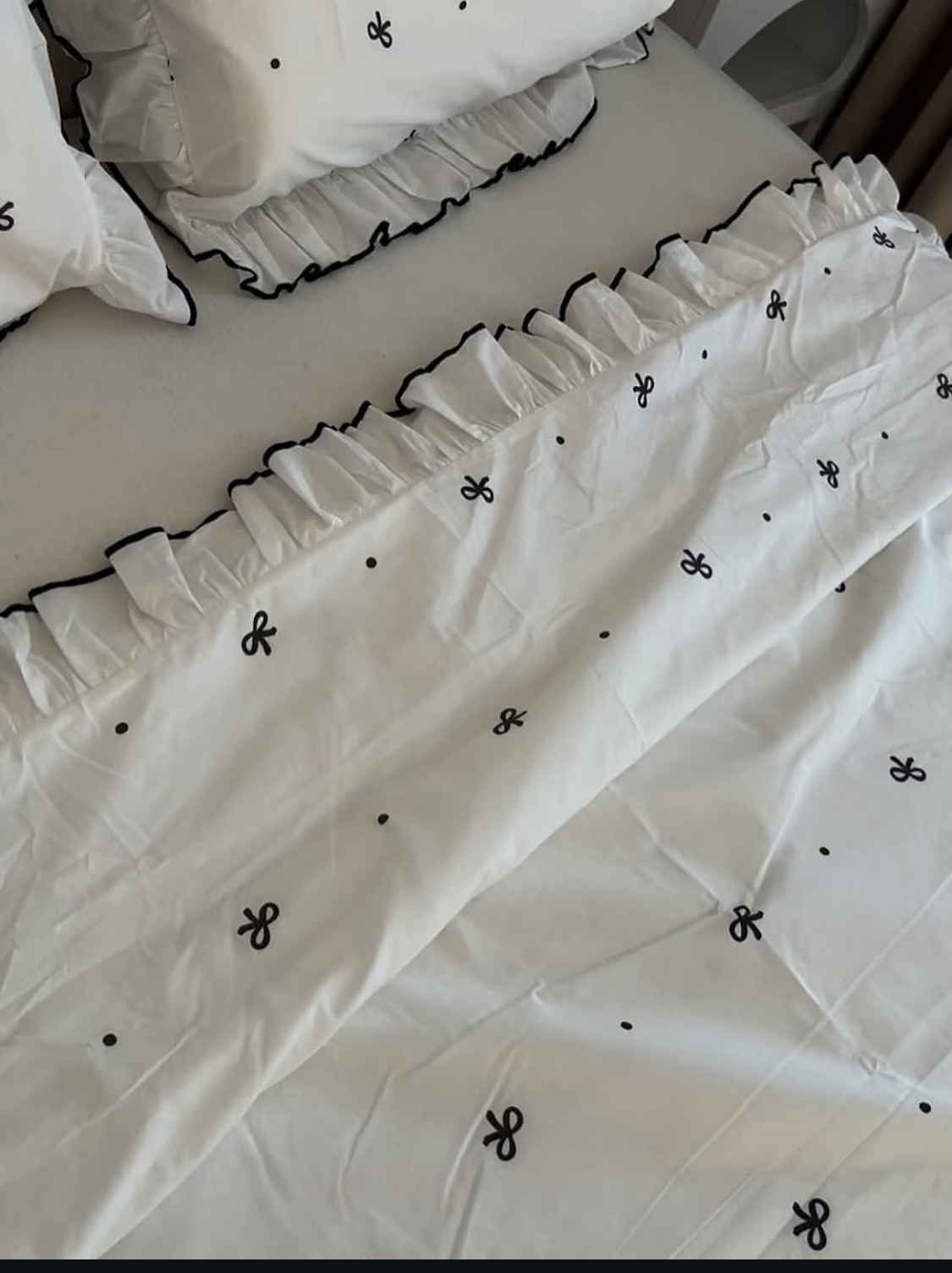 لحاف و روتختی چیندار پاپیونی سفید مشکی پینترستی