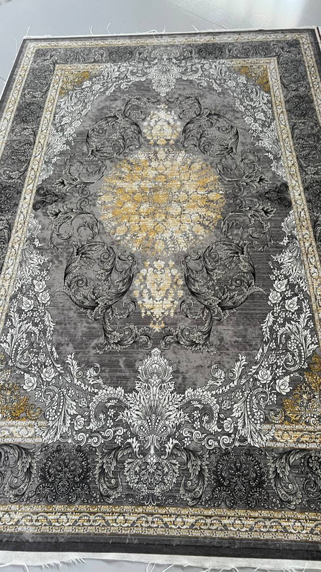 روفرشی کشدار طوسی طلایی نقش ایرانی مخمل
