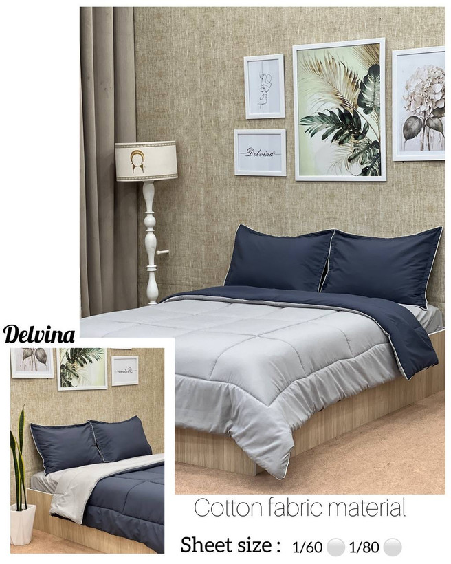 لحاف و روتختی سرمه ای طوسی دورویه مغزی دوزی
