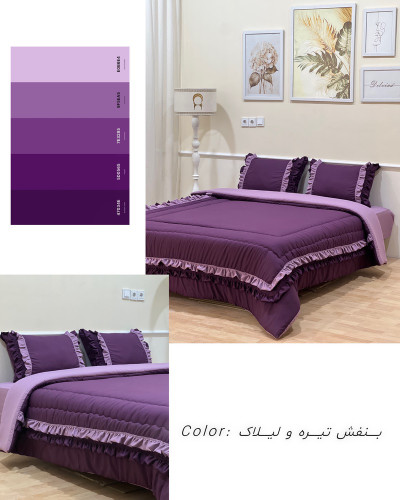 لحاف و روتختی چیندار الیزه بنفش تیره و لیلاک میکرو تنسل نخی و پنبه کلاسیک