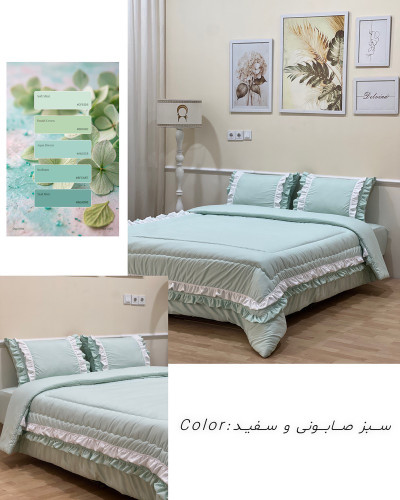 لحاف و روتختی سبز صابونی و سفید چیندار الیزه میکرو تنسل نخ و پنبه